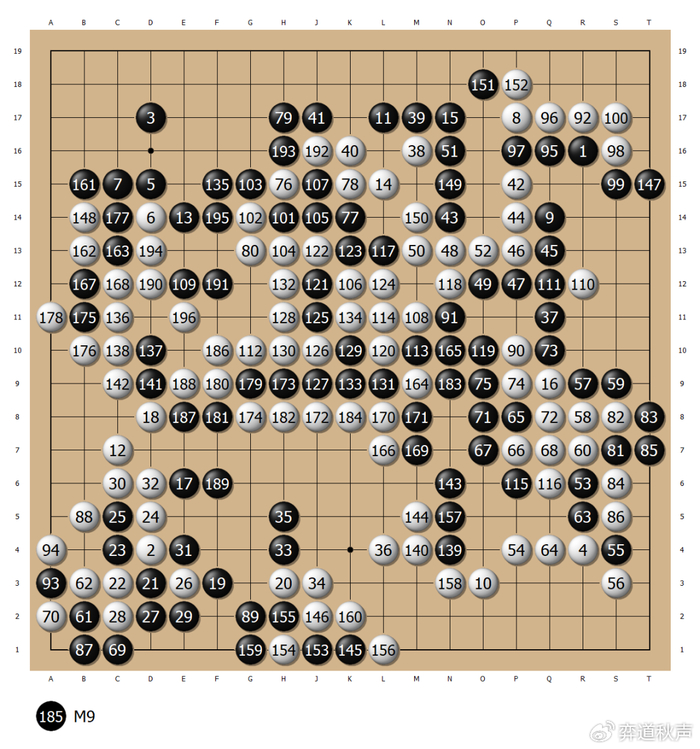 此后双方推来让去,几经反复。刘昌赫黑135再出缓手,白棋抢到136的大棋,实空领先。